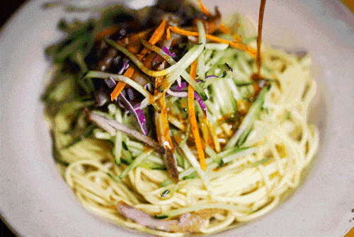 生活在帝都这个泥浆大烤炉里,出门走几步就大汗淋漓,如果有一碗凉面摆在面前:不冒一丝热气,面条清爽利落,酱料调得稀薄合适,温柔地裹住面条。吃完整个人觉得神清气爽,满血复活!