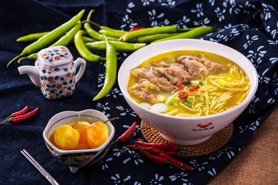 这么冷的天,吃一碗热乎乎的汤面,胃都跟着一起暖起来了。金汤里面永远深藏着比艳遇更加诱人的……美味。味蕾被黄橙橙的灯笼椒辣味打开,才能迎接那金汤肥牛本源的酸与鲜。捞起金汤里最后一根粉儿,她摸着油嘴巴对我总结陈词:明天,一定要再来一次。