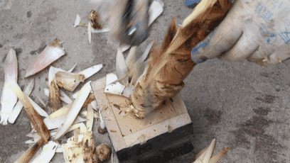 冬笋是立春前还没有出土的南竹的幼笋,尚未露出土表时,若看到地面上有土面隆起,有细缝,就可以在此下锄头了。挖出来的,就是冬笋了。