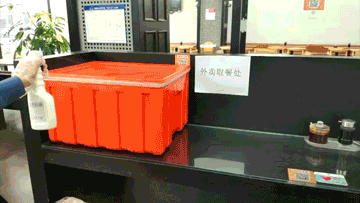 全程人员无交叉无接触,坚守各自岗位,独立打包更安心,打包员增加手部消毒次数。外卖箱360度无死角、反复定时消毒。