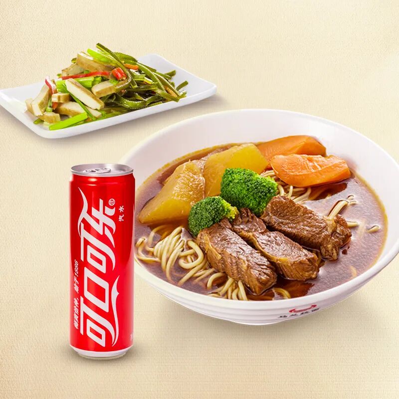 1、红烧牛肉面+可乐+凉菜素拼单人套餐