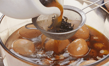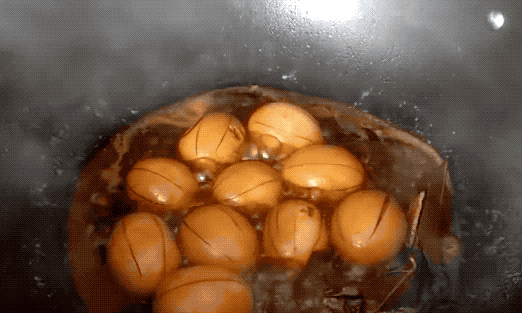 加茶叶、盐、酒、水以旺火烧沸,加盖,用小火慢煮,做出的茶叶蛋果然香气更浓。